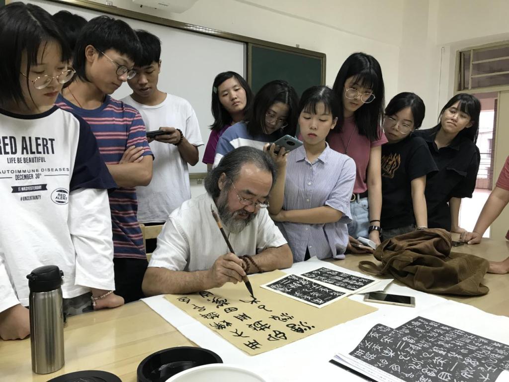 “五体书创作与应用”是专业课的核心课程。实现书法艺术创作水平大幅度提升这一根本任务的同时配合选修课中“工艺美术大师 进课堂”系列课程,将书法五体书创作应用于工艺美术领域的研创之中。