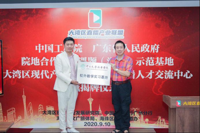 周国屏副院长代表中山大学新华学院向大湾区直播人才交流中心颁发校外实习基地牌匾