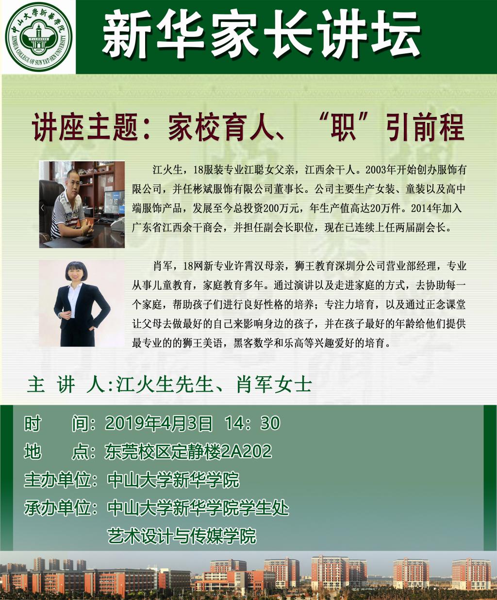 【第四十三讲家长讲坛预告】-主题:家校育人,“职”引前程