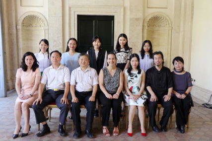 双方代表合影(前排左起:廖益清执行院长、许淑锐副校长、王庭槐校长、Raffaella Florani院长、刘婉莉校长助理、杨贤春副院长、张正梁董事长)7月15日,中山大学新华学院代表团王庭槐校长一行应邀访问了意大利但丁语言学院,受到了但丁语言学院罗马校区Raffaella Florani院长、语航集团张正梁董事长等的热情接待,并就关于授权中山大学新华学院为意大利语考点、意大利语言培训等项目进行座谈。座谈会上,Raffaella Florani院长等人介绍了但丁语言学院的历史和意大利语言的发展史,重点介绍了但丁语言学院的悠久历史、意大利的语言水平、雄厚的师资队伍和对教师的培养、对日常工作的不断改进与衡量、地理位置的优势以及学生日常学习意大利语的活动教学。她着重指出,语言应从历史与文化中学习,而不仅仅是教师口述。