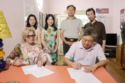 中山大学新华学院代表团在国际艺术学院edda silvsestri院长和留学生姚岚的陪同下参观了罗马国际艺术学院的音乐教室等相关设施设备,并签署中山大学新华学院与罗马国际艺术学院合作备忘录,罗马国际艺术学院将协助中山大学新华学院音乐系的开设和音乐教育专业的设置,以及语言教育、学生互换、开展共同研究和举办学术研讨会等。