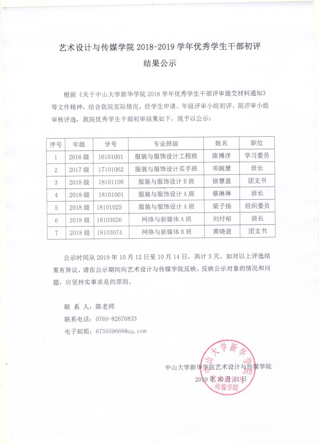太阳集团2138网址,2138cc太阳集团官网入口2018—2019学年优秀学生干部初评结果公示