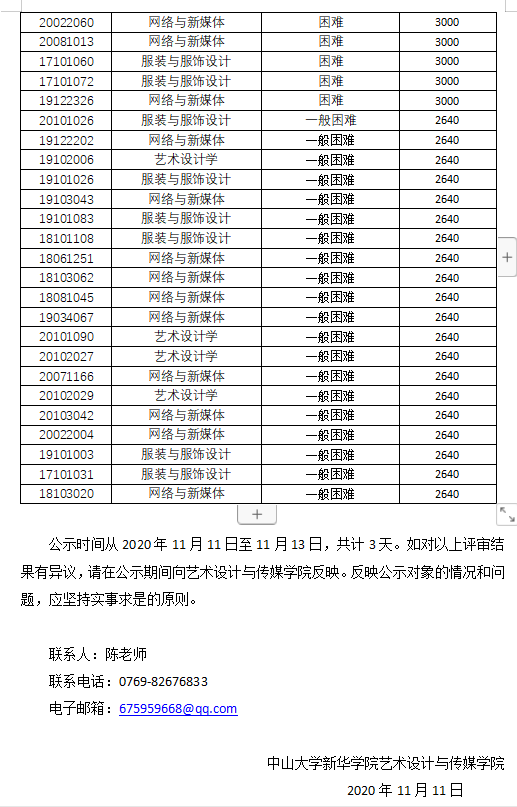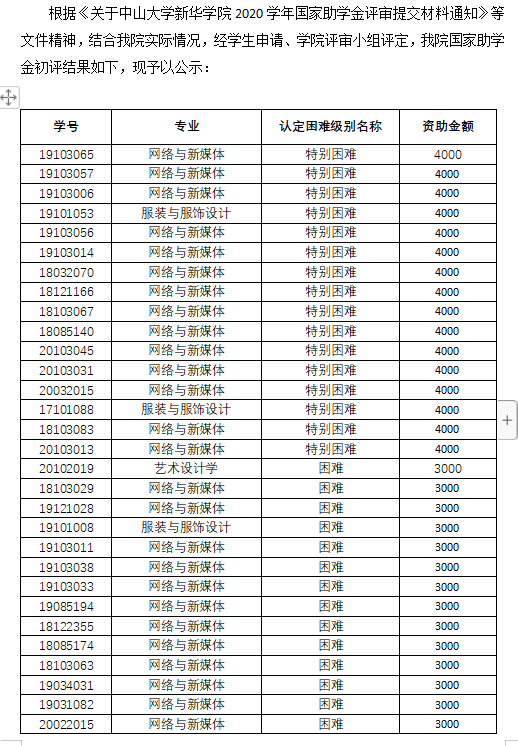太阳集团2138网址,2138cc太阳集团官网入口2020学年国家助学金初评结果公示