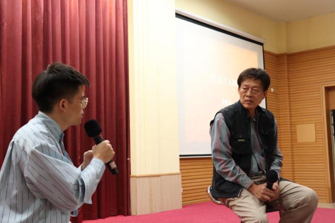 第三个环节,主持人汪文超老师对黄慰汕主任进行采访,黄主任对纪录片创作前期遇到的困难、影像和图片资料的收集、纪录片中使用的音乐、展现的细节以及它所要传达的情感进行了详细介绍。黄主任坦言:这部纪录片由于不是当下主旋律的题材,在创作的过程中会受到很多困扰,首先就是资金不足的困扰,其次是被采访者很多年事已高,而且分布在各个地方,摄制组也是来回奔波,历经艰辛。作为一部严谨的历史题材的纪录片,既要对观众负责,也要对历史负责,所以对于一些细小的情节都要反复核实到底当时发生了什么。