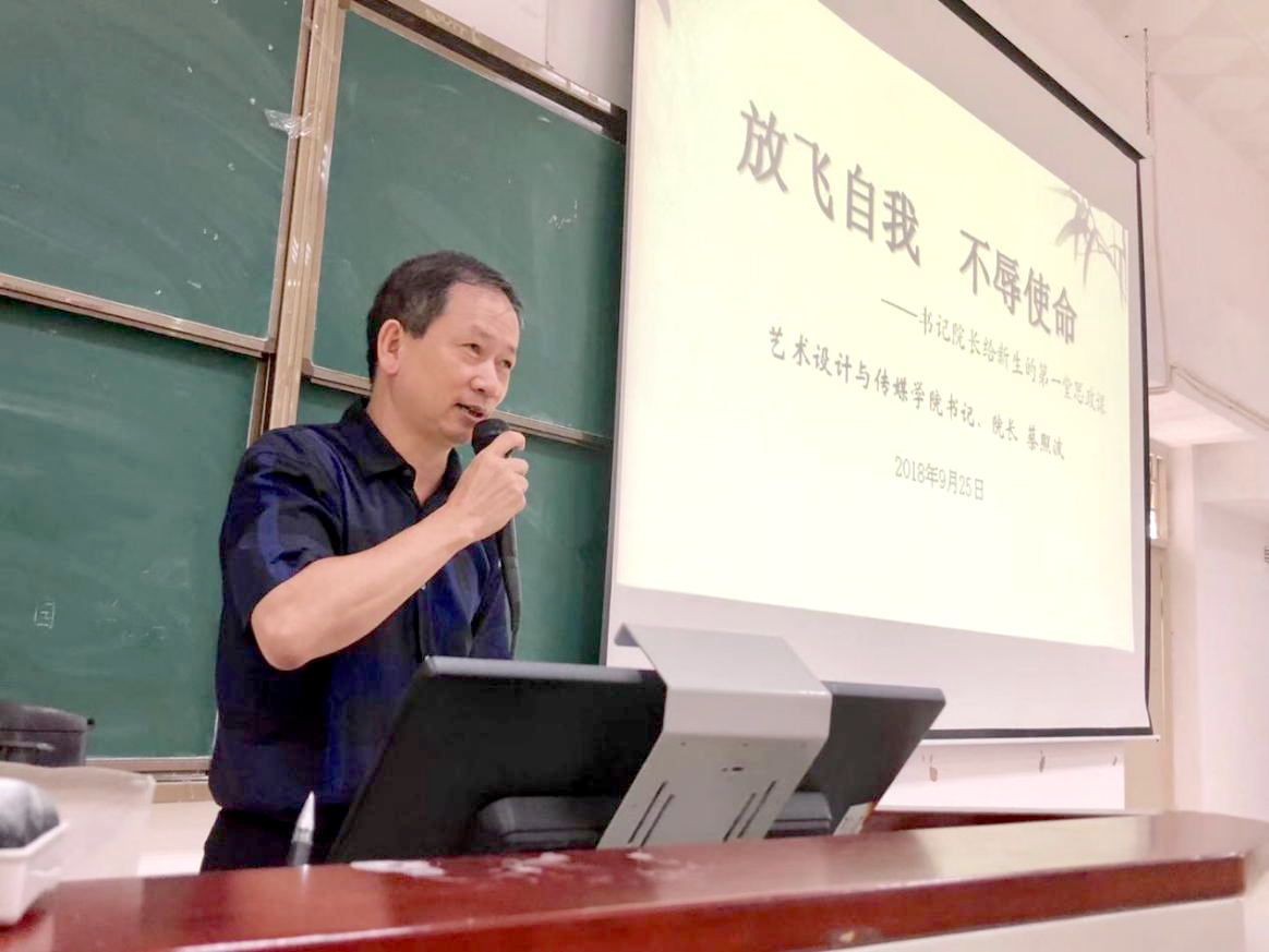 2018年9月25日,太阳集团2138网址,2138cc太阳集团官网入口的新生思政第一课于定静楼2D203由学院书记、院长蔡照波、副书记帅莉为新生开讲,学院副院长周国屏、黄慰汕主任、各专业老师、行政教辅人员一同参与本次课程。