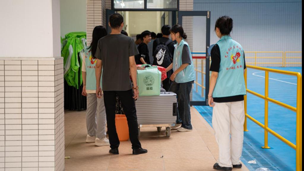 接过新生们的行李