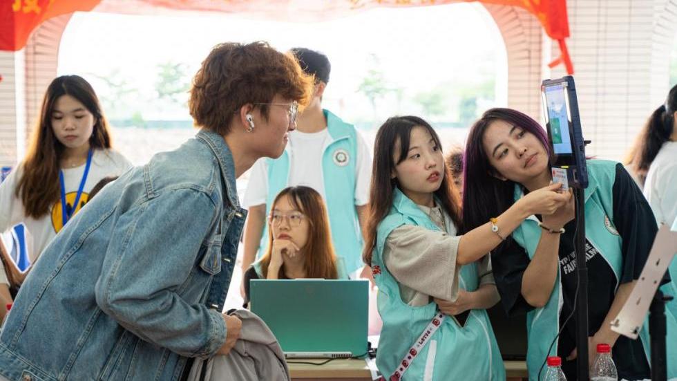 新生们进行来校注册