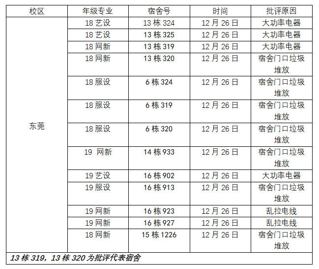 通报批评的宿舍