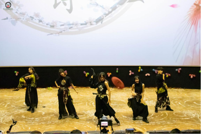 黑色系服饰,伴着古色古香的背景音乐起舞,肢体灵动,舞姿翩翩,意境深远幽美,吸引观众眼球。这场宅舞加深了同学们对御宅文化的了解,带来视觉上的享受!