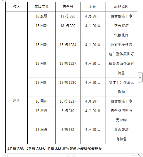 通报表扬的宿舍