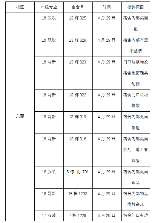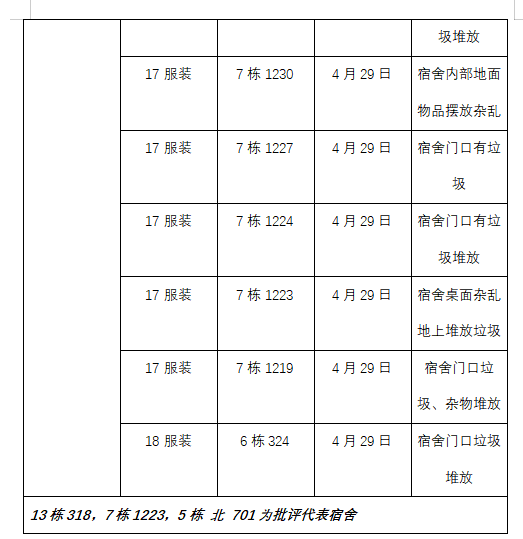 通报批评的宿舍