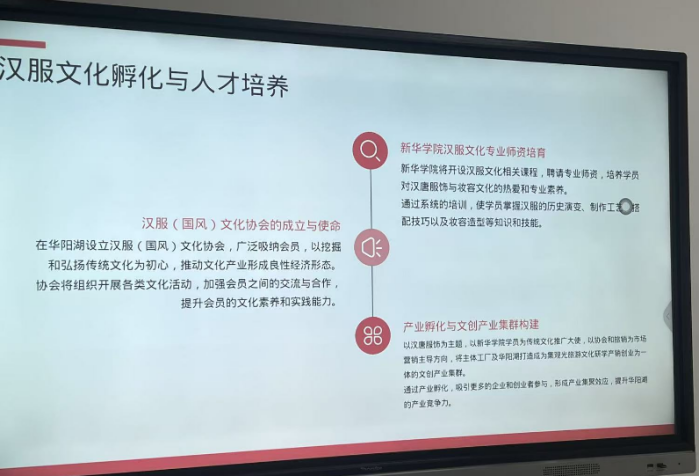 经济策划鲁总介绍了活动的初步构想,以传统人物为场景,打造华阳湖汉服特色打卡地。活动前期要开始预热,吸引汉服的兴趣爱好者进来参与,进而扩大活动的影响力。借助广州新华学院的人才,将更有利于活动的开展。汉服的妆容、设计等人才储备就可以从有汉服兴趣的学生群体开始培养。