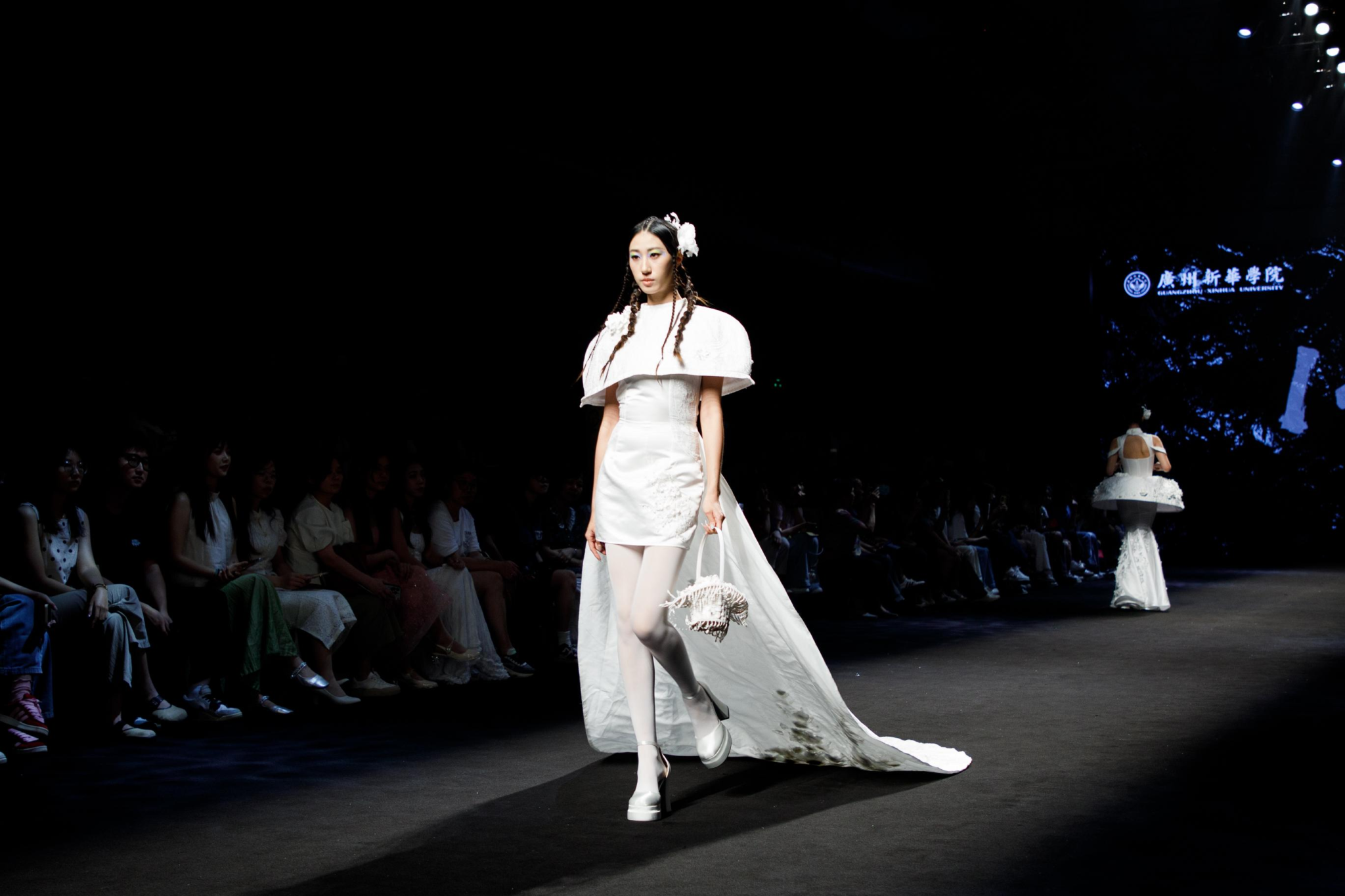 本届时装周以“实现梦想的天桥”为主题,汇聚了全国29所服装高校的上万件创意作品,超过两万名时尚新生代共赴梦想之约,在T台光影中传递传统文化精髓、东方美学韵味、人文关怀理念、可持续发展思维、科技创新元素和当代生活气息。