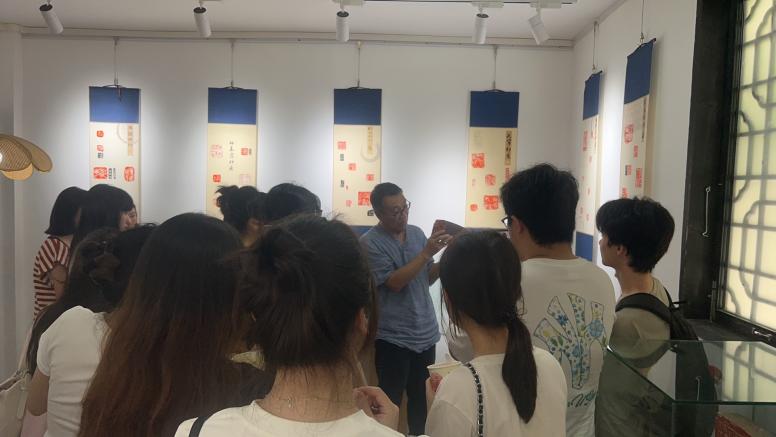 此次展览的成功举办,离不开外聘教师朱广贺老师的精心策划与指导。朱广贺老师是一位资深的教育工作者,是中国书法家协会员,他不仅是中国陶瓷印艺术的重要推动者之一,同时也是本校书法专业的兼职教师。在他的教导和班主任李庙华老师协助下,学生们在短短两周的时间内,完成了从理论学习到实践创作的全过程,这次展览凝结着师生的智慧和汗水,不仅是对师生共同努力的认可与激励,而且深化了学生对陶印艺术的理解,激发了他们对这一领域的热情和探索欲望。当日李庙华老师受书法学专业主任委派带领23级书法学专业的学生参加了开幕式,朱老师和李老师分别对大的作品进行点评,同学们收益多多。