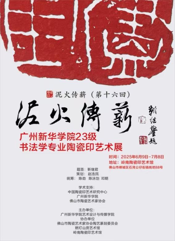 通过此次“泥火传薪”陶瓷印艺术展,充分展示了广州新华学院书法学专业在人才培养过程中,将陶瓷印课程作为特色教学模块之一,积极融入岭南传统工艺与地域艺术元素所取得的阶段性成果。展览不仅提升了学生的专业能力,也增强了他们的创新意识。正如“泥火传薪”主题所传达的精神,我们希望通过此类实践,推动书法与岭南工艺美术的传承与发展,激发更多青年投身于书·刻艺术探索。