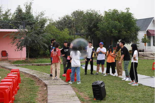 夜幕降临,有部分同学还沉浸在游戏之中,现场欢声笑语不断,气氛其乐融融。