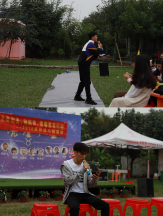 第三个环节为唱歌表演环节,由同学们自愿参与,得到同学们的积极响应,分别由胡梓志、沈俊佳、李楠声、关宇浠四名同学表演。四位同学的歌唱风格各异,歌曲有感伤亦有欢乐,有舒缓也有激进,他们深情的演绎牢牢地抓住了观众的心,现场掌声不息。