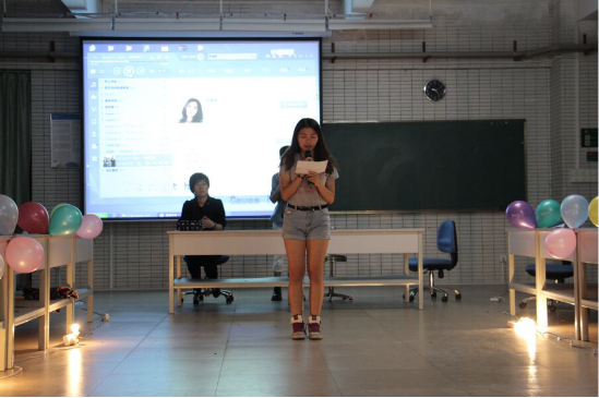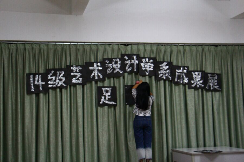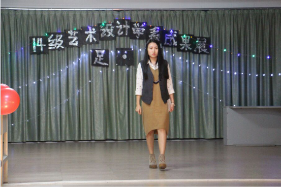 晚上7点半,在主持人李美琪同学邀请专业课程老师--培心老师给大家的寄语后正式开始--14级艺术设计学系课程展“足·迹”