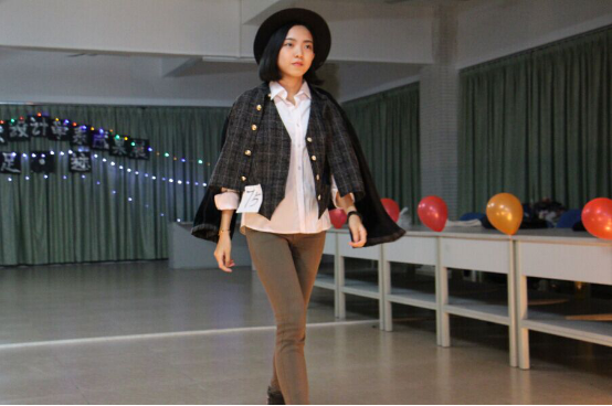 首先是第一系列“庄重严谨”的系列,随着深沉凝重的音乐节奏,即使同学们没有经过特殊的模特训练,也依然能够合着音乐节拍,气场强大,神情到位,一点儿也不亚于专业模特。男生身着马甲,犹如一个个谦逊礼貌的绅士,贴身的马甲尽显男生矫健的身躯。女生宛如干净利落的女王,修身的马甲显得这些女生冷酷中带有一点幽幽的女人味。