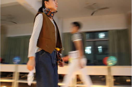 班委们担当了活动的策划与组织者,活动当天,辛勤的工作人员和老师早早一起筹划着场地的摆设,为了在走秀时的准确到位的展示,同学们下午就开始彩排,直到夕阳西下......