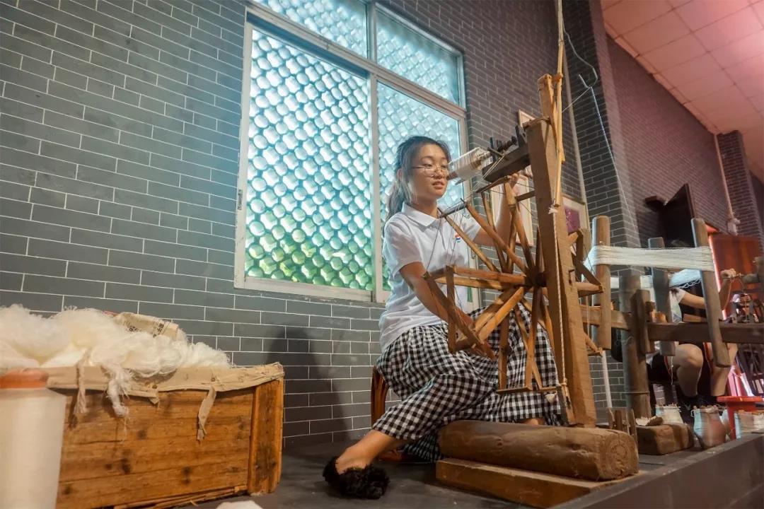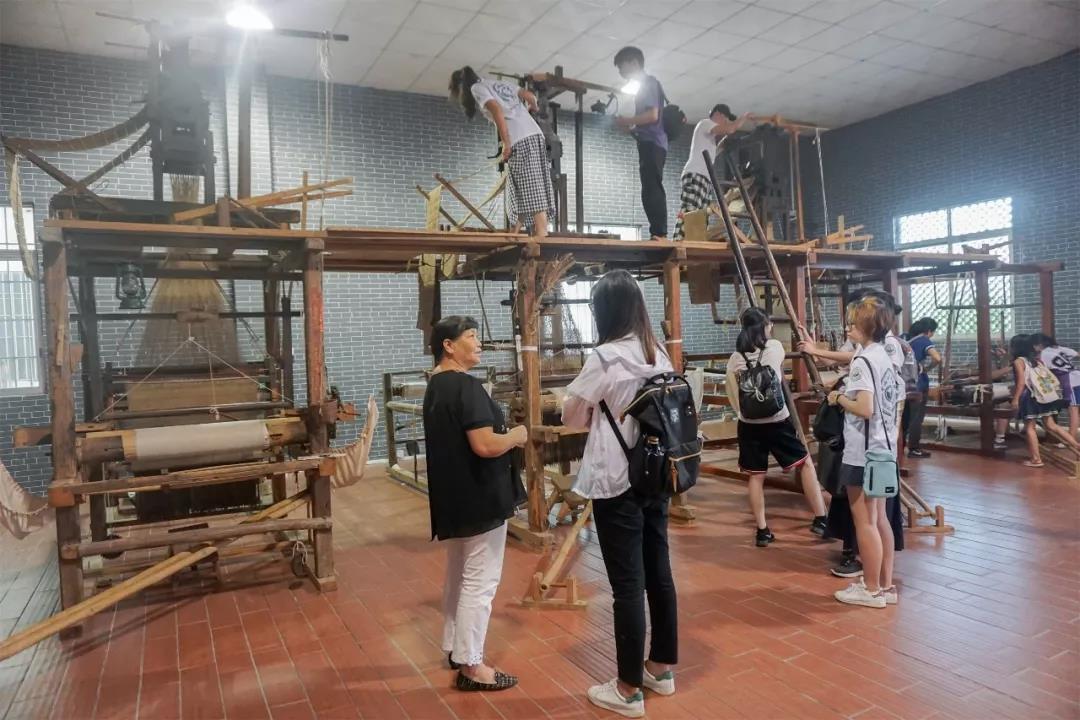 接下来继承人带领队员们一起来到香云纱丝绸博物馆。在博物馆内,有从缫丝到织布的全过程展示,让我们能够直观的了解到香云纱的织造过程。