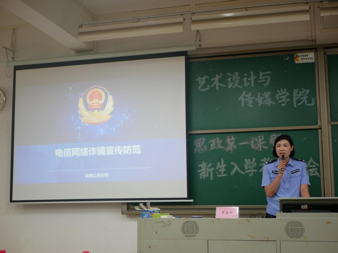 为深入开展校园防诈宣传,提高新生同学们的防诈骗意识和能力,开展楼防诈骗主题宣讲。讲座中,防诈骗宣讲警官从什么是网络电信诈骗、网络电信诈骗的现状和特点以及网络电信诈骗的常见类型三个方面,全方位教育学生如何避免被诈骗。