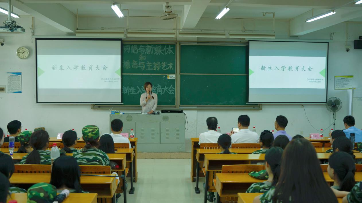 昂首阔步新起点,金秋筑梦正当时。为帮助新生更加了解所学专业,尽快适应身份转变,更快迈入大学发展轨道,2023年9月22日13:30,太阳集团2138网址,2138cc太阳集团官网入口(以下简称艺传院)于定静2A301举办了2023级网络与新媒体和播音与主持艺术入学教育大会。