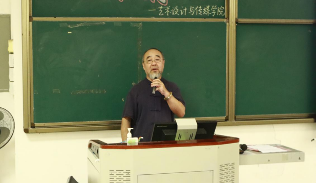 书法学系主任靳继君教授向新生介绍书法专业。靳继君主任指出本专业是一门传统的艺术,书法是纸上的舞蹈、无声的音乐。在融入到新时代、筑起艺术大厦的过程中,基础技术层面仍然是一切的根本。他要求同学们要在反复锤炼中编织黑白艺术,强调技术到艺术的过渡是人思维的觉醒。