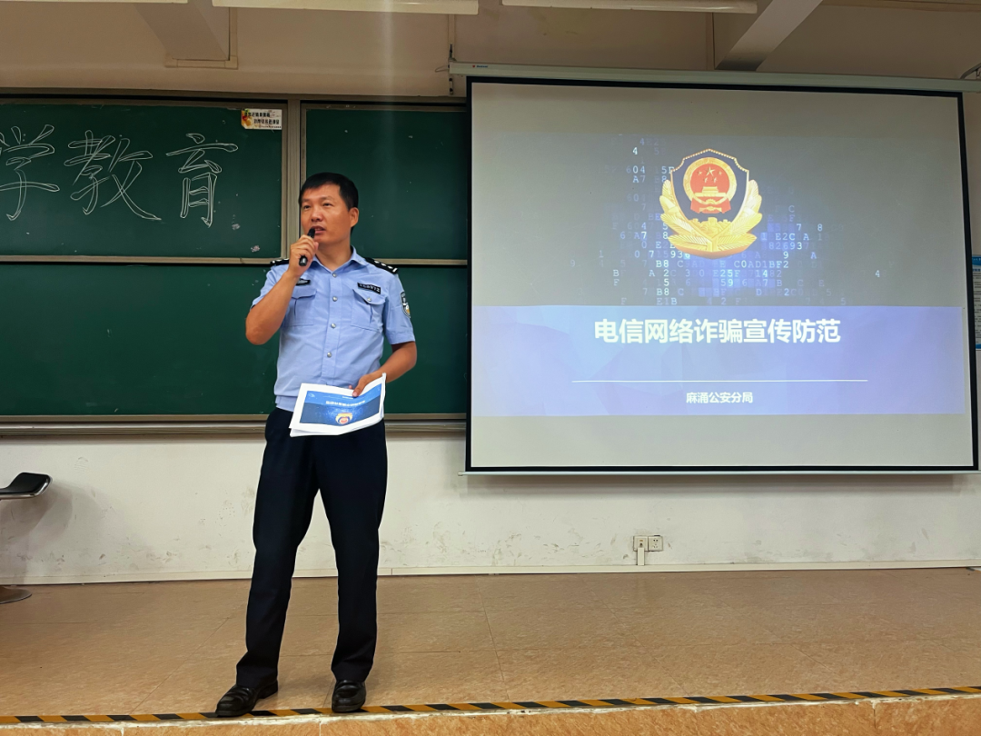 接着,麻涌公安分局秦警官、袁警官对学生进行电信网络反诈宣传,增进同学们对电信网络诈骗常见骗局与陷阱的了解,提高同学们的防骗意识和应对能力,全面筑牢校园安全防线。