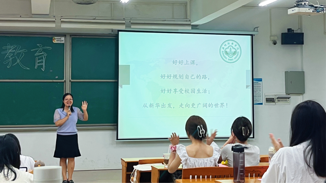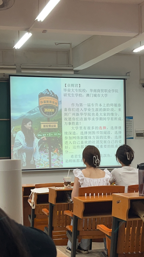 最后,黄建清老师向同学们介绍了2019级网新专升本优秀的师兄师姐们,并展示了他们写给新生们的寄语,祝福同学们可以传承师兄师姐们“优良学风班”的传统,珍惜学习机会,好好规划未来,从新华出发,走向更广阔的世界。