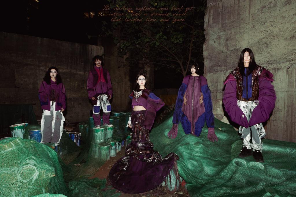 随着社会竞争加剧,当代年轻人存在巨大的精神压力、焦虑等问题,所以年轻人常以刻意装傻充楞或胡说八道的发疯形式来解构现实问题,‘假性发疯’成了年轻人对世界感到困惑滋生的强有力的宣泄方式,从这些独特的情感表达方式激发出设计灵感。每个人都像迷失又孤独的个体,交织又疏离,伴随着创伤中情绪的释放,直面伤痛,将创伤转化为生活的动力,传递出积极的反叛的精神内核。