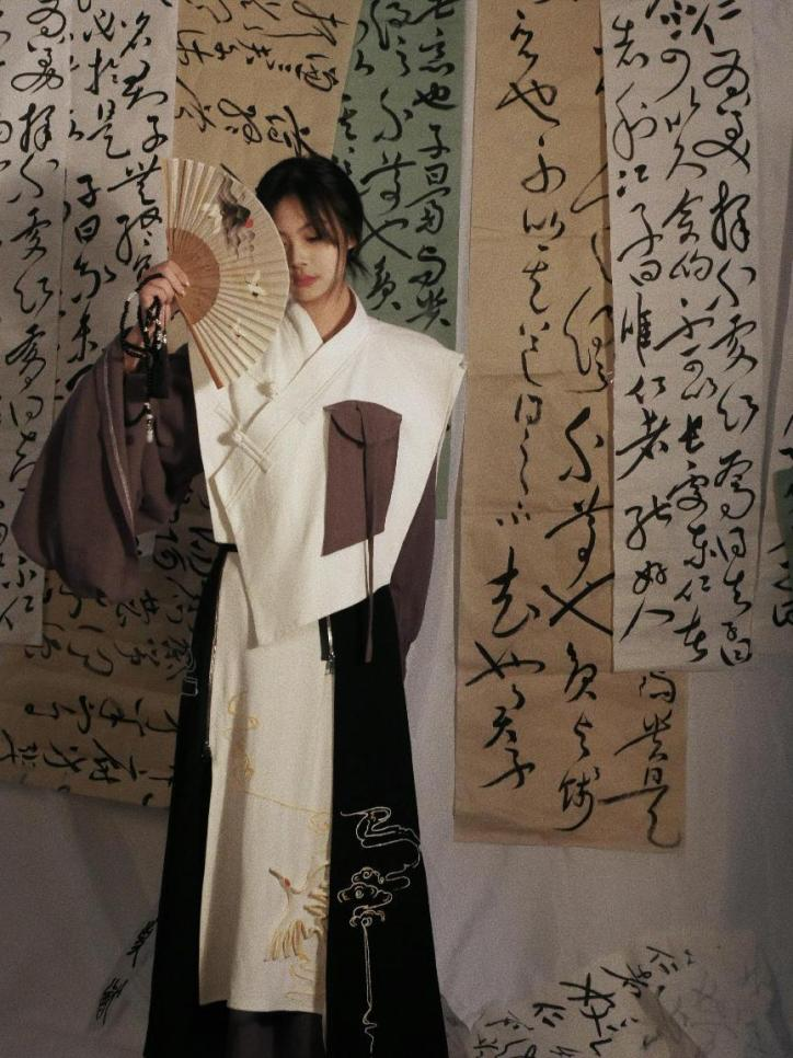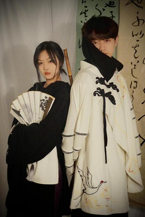 灵感来源于当下的话题社交恐惧。“鹤栖”意为隐居或隐居的人,从元素“鹤纹”的内涵出发,表达对隐逸和自由的向往。款式上采用层次设计、立体与平面的碰撞,结合中式大褂旗袍、马甲等特征性设计;色彩纹样,以水墨画黑白灰三色为主色调,红黄点缀使用,传统鹤纹与祥云纹样相结合造就浩荡底纹;服装面料上采用天然材质棉麻面料,舒适透气,垂坠质感十足,颇有侠气风韵。