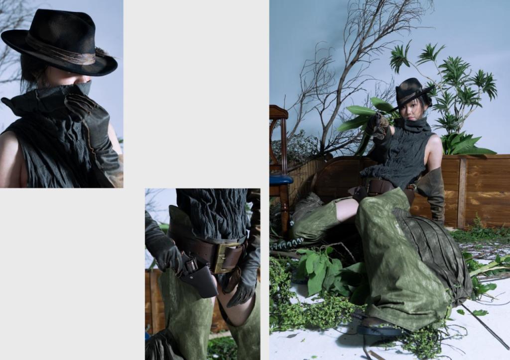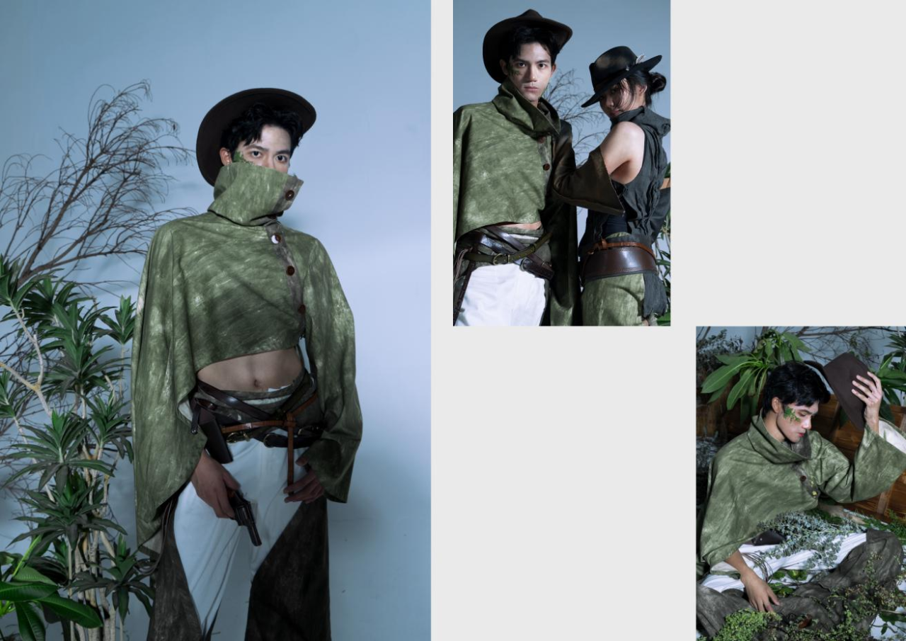毕业设计的独特之处在于对树木的深入观察和理解。通过细致入微的观察,捕捉出树木形态、纹理和色彩的特点,将树木所代表的生命力和自然美用服装的形式表达出来。从服装的廓形到面料的选择,再到装饰细节的处理,整体设计将自然与时尚巧妙结合,通过这些创新设计,希望能够让大家在我们的服装里感受到树木所蕴含的力量、生命力和美丽,感受人与自然的融合。