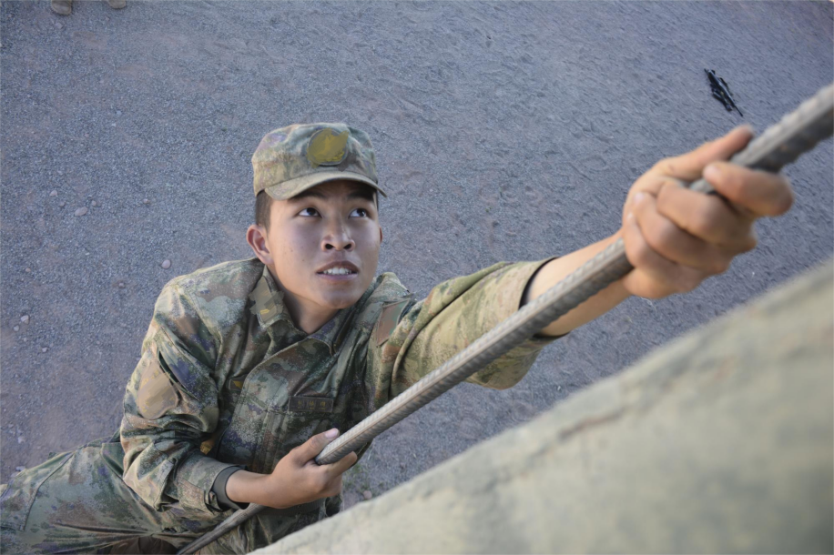 在那个满腔热血的年纪,我来到了雪域高原——西藏,站在海拔五千米的雪山之巅,俯瞰脚下被烈日炙烤得发烫的沙地,指尖攥紧的钢索在掌心勒出血痕。每一次蹬踏,都是一场与重力的搏斗,缺氧的肺部仿佛灌满了燃烧的铁砂,可当视线扫过远处皑皑的冰川,耳畔忽然回响起营区晨课时老班长说的那句话:“战场上从不为懦夫让路,高原之上只认铁血的坐标。”30秒!25秒!23秒6!在不断进步的背后是一次次不遗余力的练习。