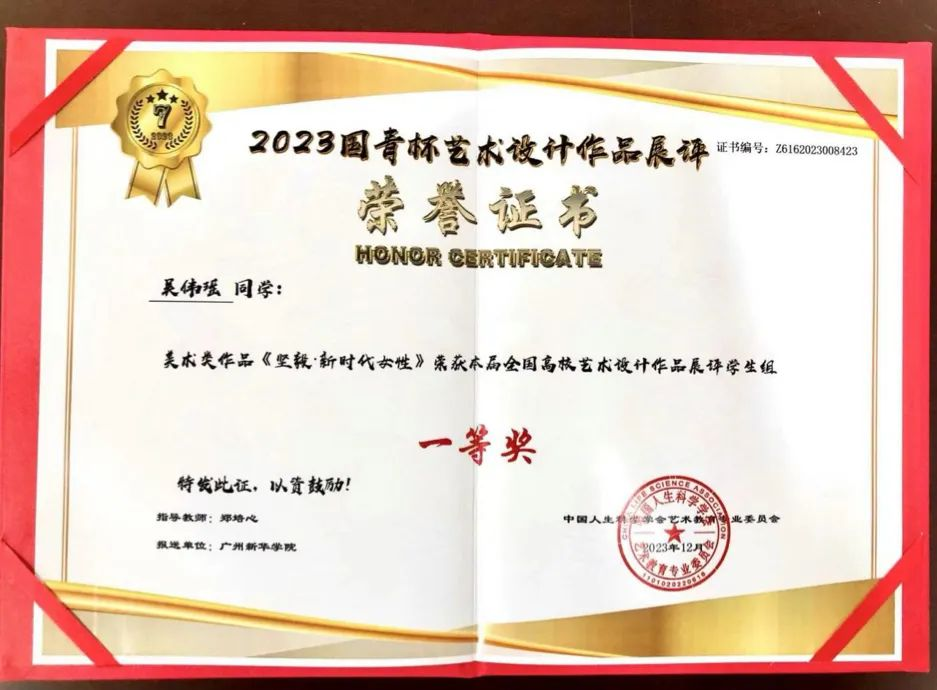 吴伟瑶同学在“国青杯”全国高校艺术设计展评中荣获国家级一等奖