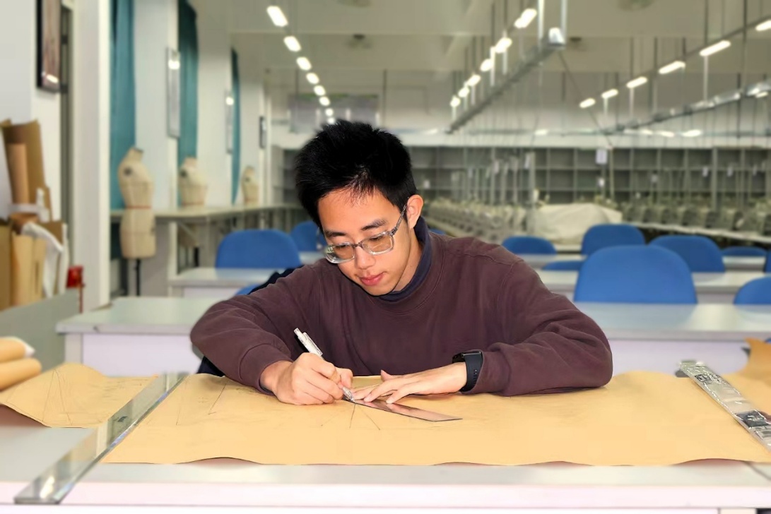 “热爱是成功的基石。”他深知,作为一名艺术生,专业能力是立足之本。在课余时间,他始终保持着对专业知识的渴望与追求,不断拓展自己的视野,利用课后时间阅读各类服装设计相关的书籍,同时参观服装展览会以丰富自身见识。