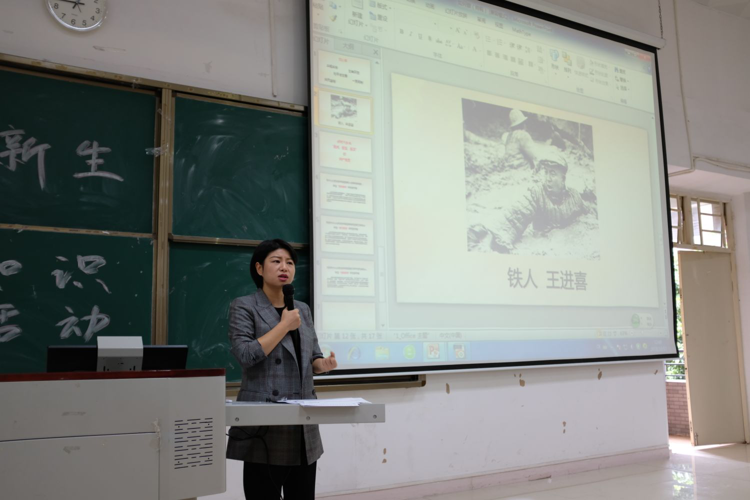 紧接着,副书记引用了邓小平和王进喜的真实事例与同学们继续探讨怎么做一名党员。她为我们介绍,邓小平没有被三起三落摧毁,相继提出了改革开放、和平与发展、共同富裕和“一国两制”的大胆想法,改变了中国,也影响了世界。铁人王进喜为延续大庆油田的运作,不顾生命跳进水泥江,用自己的身体去拌水泥。副书记强调,他们用行动去宣扬爱国精神,他们坚守着党的精神指引,思想带动言行,愿意牺牲个人利益去支持国家,为我们展现优秀党员的模样。