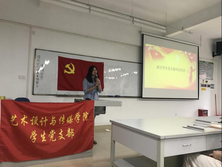 会议第三项议程,学生支部支委换届工作。经过选票差额选举,最终确立了由陈捷云同志、汪绮梦同志、叶梓婷同志三名同志组成支委会,陈捷云同志担任学生党支部支委会书记。陈捷云书记发言:“怀着激动的心情接任了艺术设计与传媒学院学生党支部的书记工作,十分感谢帅莉副书记的信任和付出,为我们党支部后期更好的发展都已经铺好了路。接下来,我同支部委员里的两位同志会以强烈的责任感和使命感推进我们学生党支部的建设,也希望学生党支部全体成员共同努力,慎言慎行,铭记自己的身份,全力支持学生党支部的工作开展,一起建设一个更好的学生党支部。”