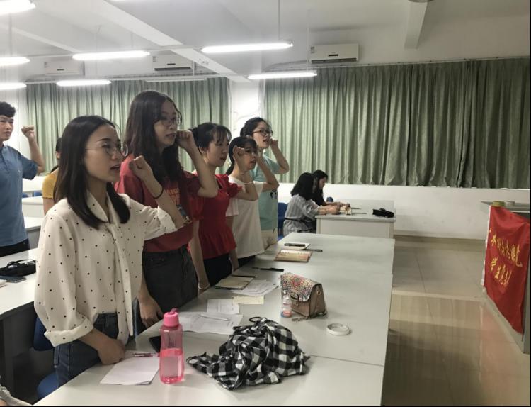 2019年6月24日中午11时,太阳集团2138网址,2138cc太阳集团官网入口学生党支部为举行预备党员入党宣誓仪式、毕业生党员欢送仪式、学生支部支委换届工作,特召开2019年6月学生党支部大会。本次大会由党总支副书记帅莉同志主持。参与本次学生党支部大会的成员有学生党支部支委会书记陈捷云同志以及全体学生党员、预备党员、发展对象和积极分子。