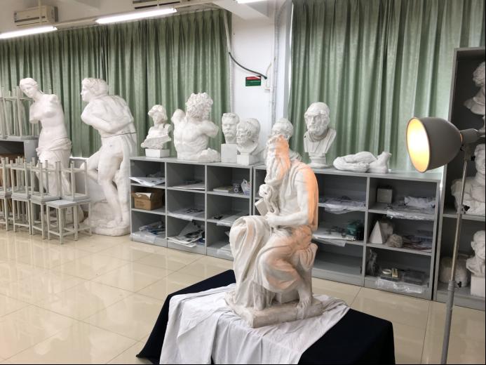 艺术设计画室创建于2013年,位于格物楼1C404,总面积达213平方米。画室是艺术与传媒学院的专业基础实验室,里面配备了断臂维纳斯石膏全身像、奴隶石膏全身像、大卫石膏头像等20个、几何静物石膏83个、陶瓷静物26个、水果静物26种、半开画板与画架130套、全开画板99块、多媒体教学设备1套。画室另设学生专用的画具储物柜,画架、画板、石膏存放柜,室内环境干净整洁。