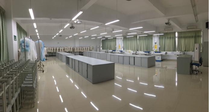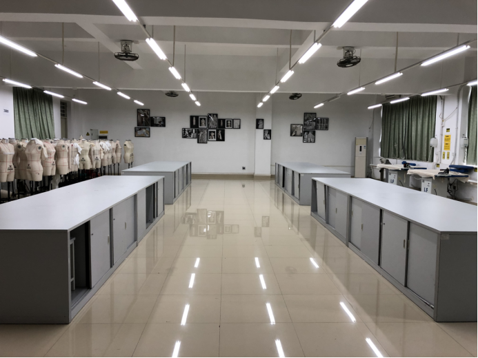 艺术设计立体裁剪实验室创建于2013年,位于格物楼①C403,总面积达215平方米。主要提供艺术与传媒学院学生进行服装设计及立体裁剪的实验室。可同时容纳60名学生进行实训操作。实验室配备有男女人台供学生进行设计及立体裁剪,同时配备三台缝纫机及四台抽风烫台和吊瓶式熨斗,不锈钢挂衣架供学生作品的存放,实验室配备了多媒体电脑设备,协助师生完成教与学的过程,艺术设计立裁实验室承担了立体裁剪教学任务,包括服装立体造型教学、实践及研究,艺术造型表现形式、手法、技巧研究,创意服装立体裁剪。此外对《服装工艺制作》、《服装结构设计》、《服装展示设计》和《毕业设计》等相关课程也可起到辅助教学的作用。能有效帮助学生掌握并运用立体裁剪方法解决服装的立体造型及板型问题,提高其立体构成、审美及操作能力,为服装设计、制板及制作提供保障。通过实践不仅使学生加深对人体结构的正确理解,掌握立体裁剪和平面纸样设计的原理及方法,而且还培养了学生的设计审美与实际动手能力。